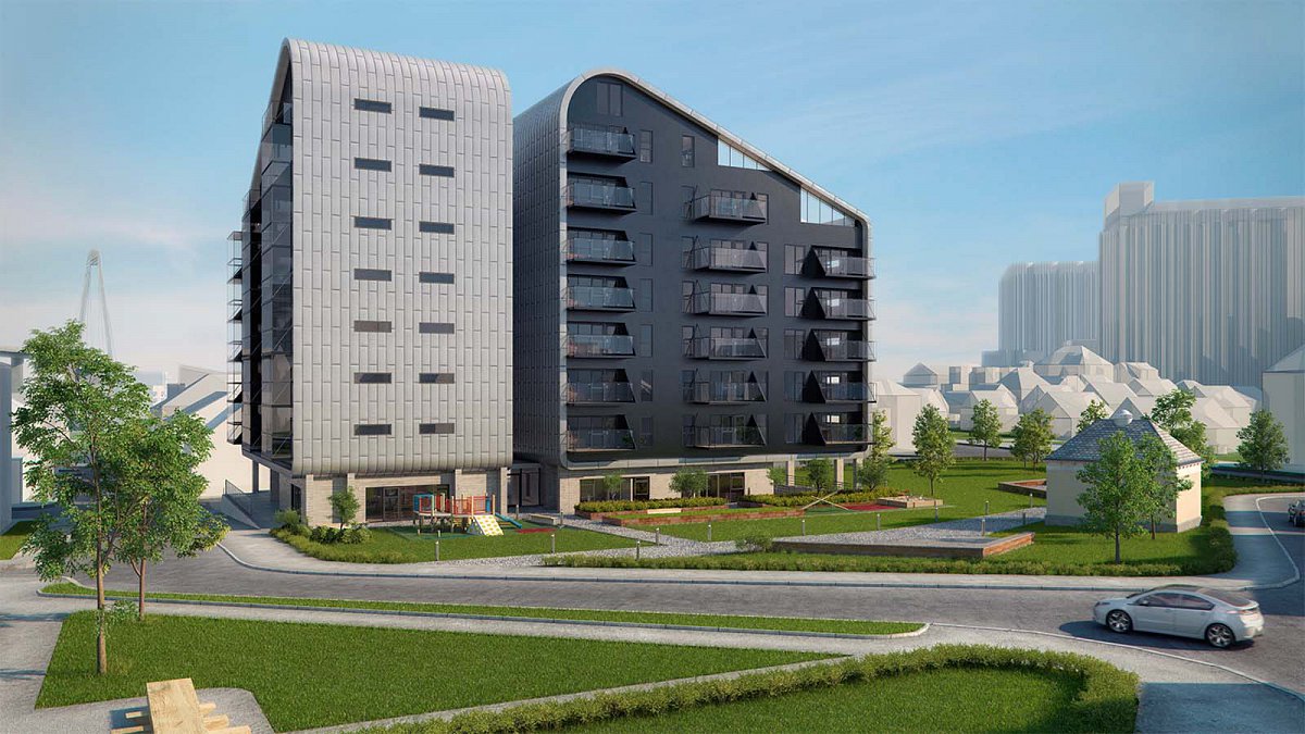 Moderne, afrundede former, gennemtænkt arkitektur, gode fasciliteter, flotte solforhold og muligheder for en formidabel udsigt gør dette boligprojekt til noget helt specielt.